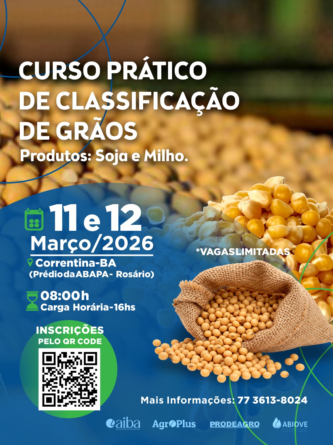 | Curso de Prático de Classificação de Grãos- Produtos: Soja e Milho | Prédio ABAPA - Rosário | 11/03/2026 | Correntina - BA | ||||