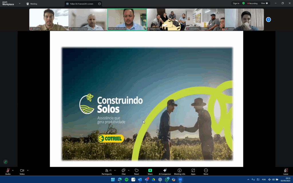 O Agro Plus promoveu no dia 3 de setembro um treinamento sobre práticas de agricultura regenerativa para 35 técnicos da Cotriel, cooperativa do Rio Grande do Sul. O conteúdo foi oferecido pela parceria com o Operação 365, programa desenvolvido pela Embrapa Trigo e a CCGL, que utiliza a plataforma Smartcoop para coleta e análise de dados das propriedades, transformados em recomendações técnicas personalizadas para cada área de produção.